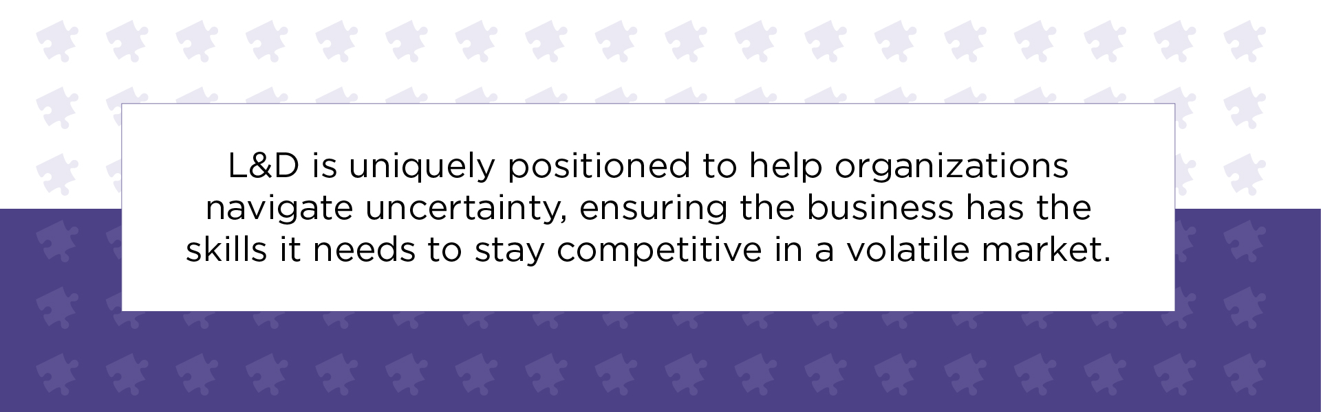 On a positive note, learning and development (L&D) is uniquely positioned to help organizations navigate uncertainty, ensuring the business has the skills it needs to stay competitive in a volatile market. In addition, Training Industry market research anticipates that the external training market, focused on sourced training solutions, will continue to grow over the next five years.