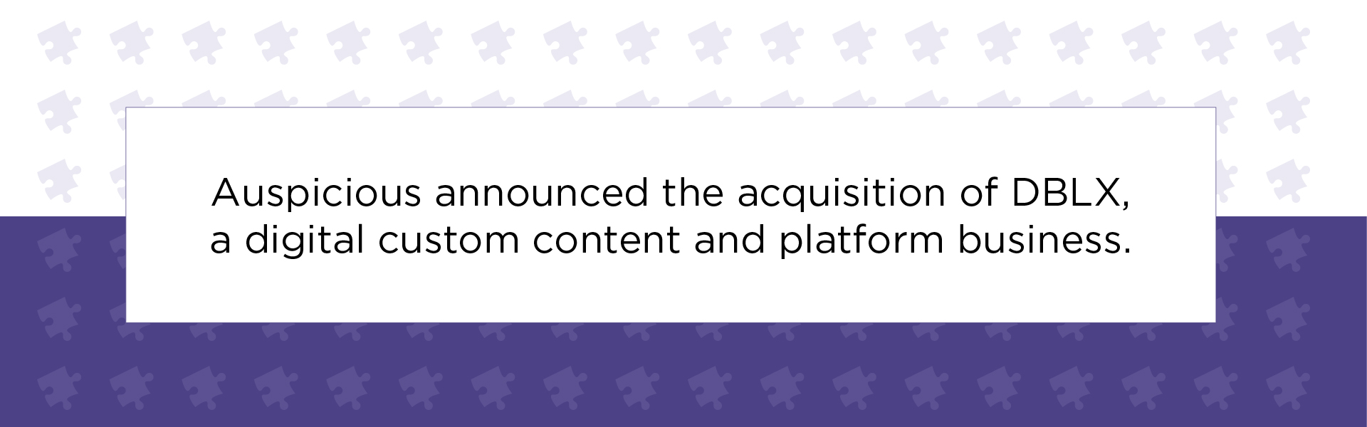 - Auspicious, a creative services group, announced the acquisition of DBLX, a digital custom content and platform business, as the company targets growth in the learning and human resources (HR) market. The press release also shared that Rob Ashcroft joined Auspicious as chief learning officer, where he will help DBLX build out its learning consultancy, transformation and employee experience offering.