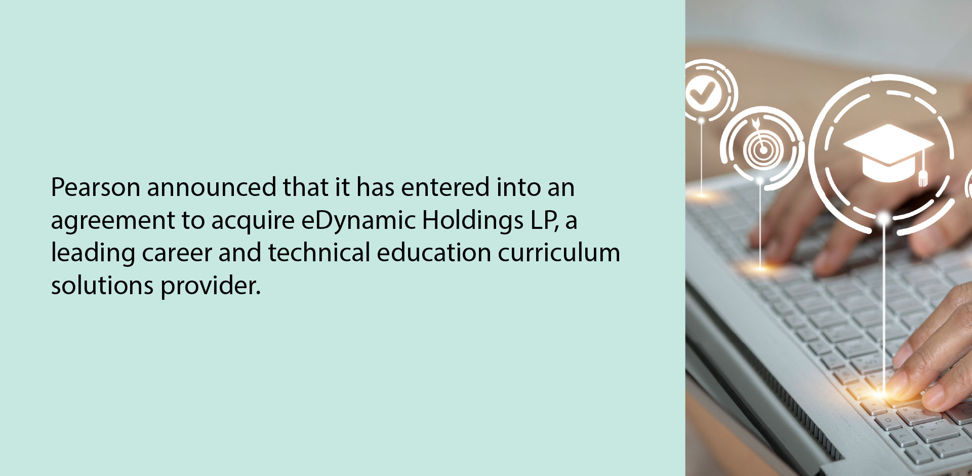 - Pearson announced that it has entered into an agreement to acquire eDynamic Holdings LP (“eDynamic Learning”), a leading career and technical education (CTE) curriculum solutions provider. “This acquisition is aligned to Pearson’s strategy, enabling Pearson to scale its position in the fast-growing Early Careers space and broaden capabilities in career-readiness solutions,” the press release.