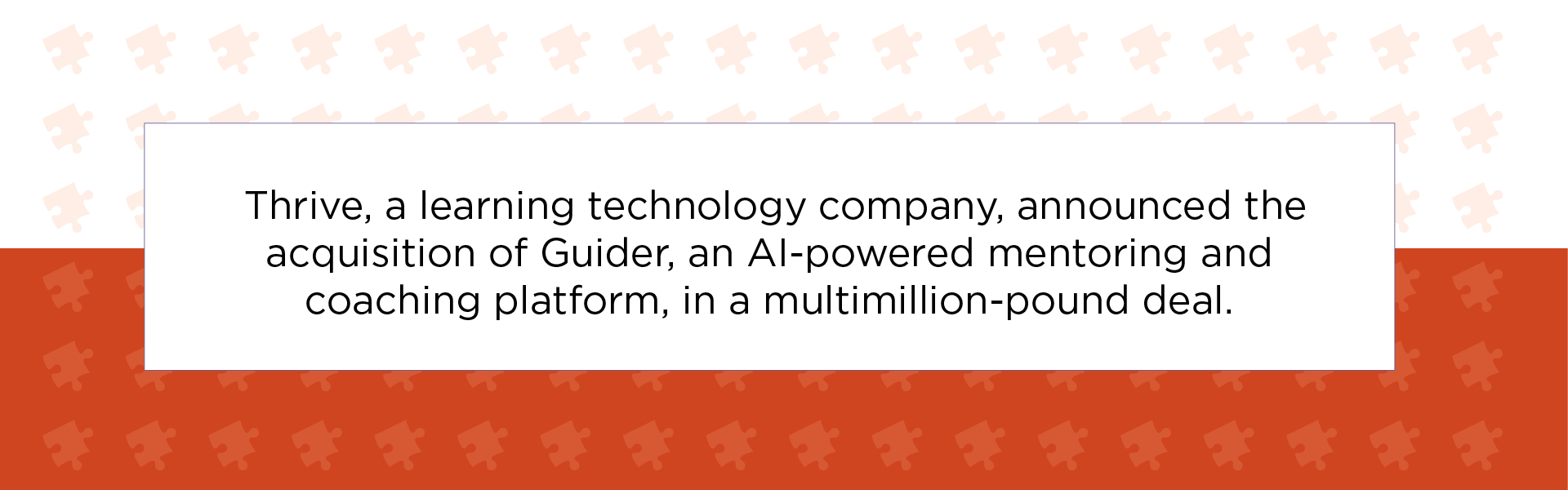 - Thrive, a learning technology company, announced the acquisition of Guider, an AI-powered mentoring and coaching platform, in a multimillion-pound deal. Later in Q3, Thrive completed its second acquisition of the quarter when it acquired Huler, as noted above.