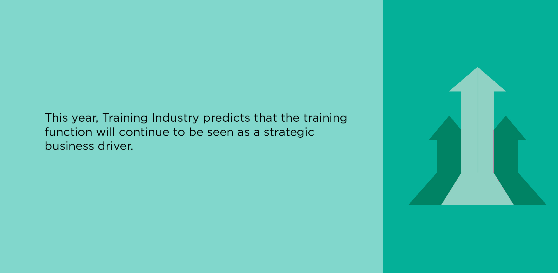 This year, Training Industry predicts that the training function will continue to be seen as a strategic business driver that will help propel organizations through change and into the future.
