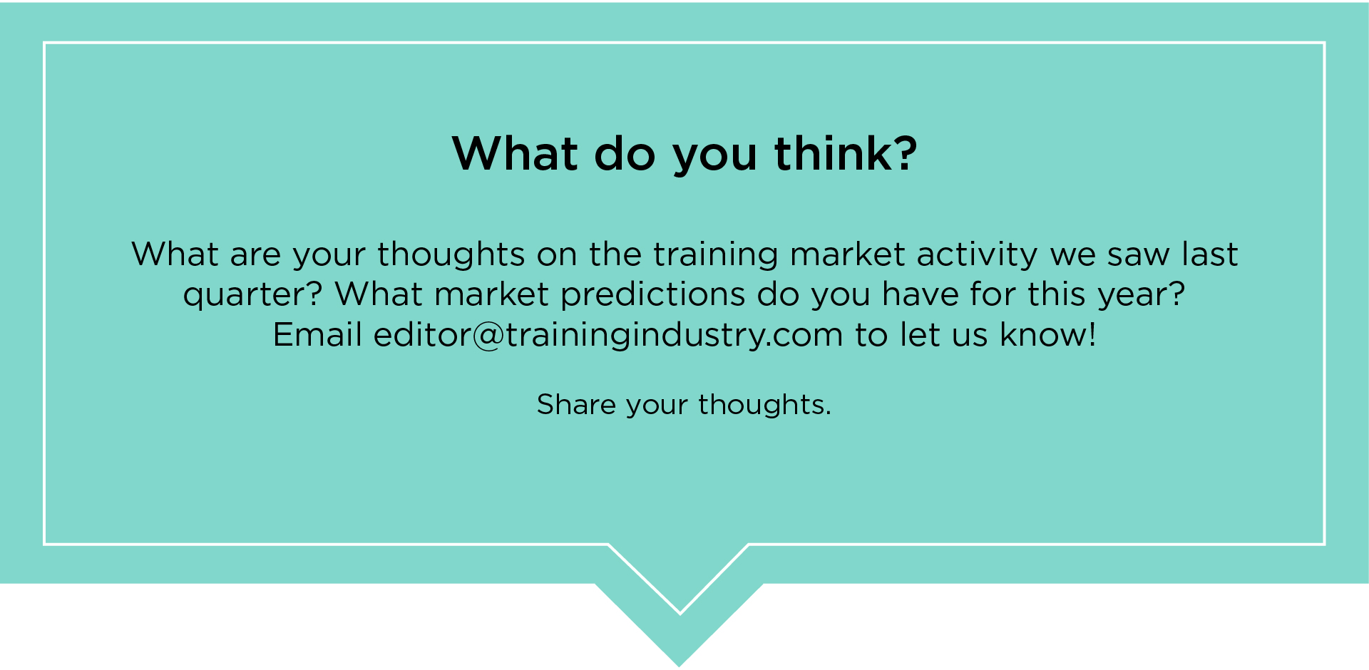 What are your thoughts on the training market activity we saw last quarter? What market predictions do you have for this year? Email editor@trainingindustry.com to let us know!