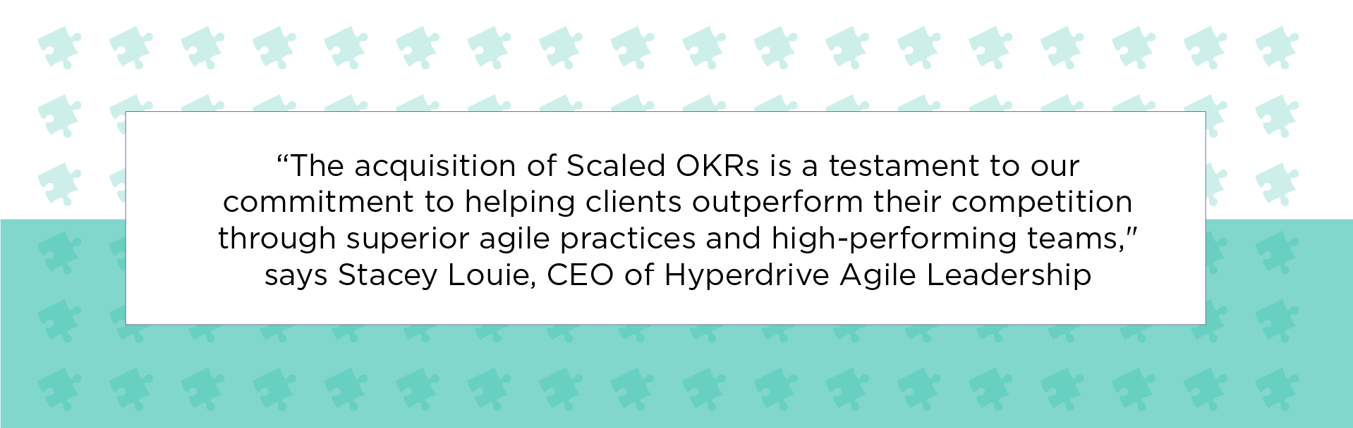 - Hyperdive Agile Leadership, an agile management solutions provider, acquired Scaled OKRs, a premier company in objective and key results (OKR) frameworks. In the press release, Stacey Louie, CEO of Hyperdrive Agile Leadership, states, “The acquisition of Scaled OKRs is a testament to our commitment to helping clients outperform their competition through superior agile practices and high-performing teams.”