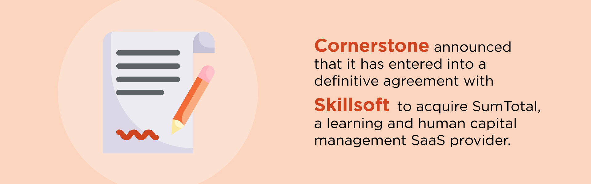 - Coming off the heels of its acquisition of EdCast, Cornerstone announced that it has entered into a definitive agreement with Skillsoft to acquire SumTotal, a learning and human capital management SaaS provider.