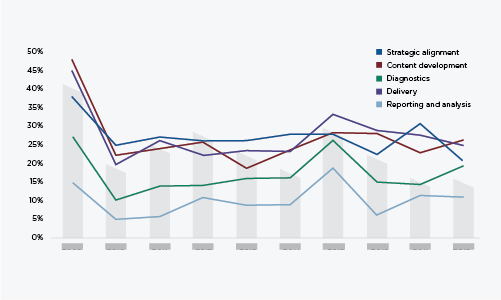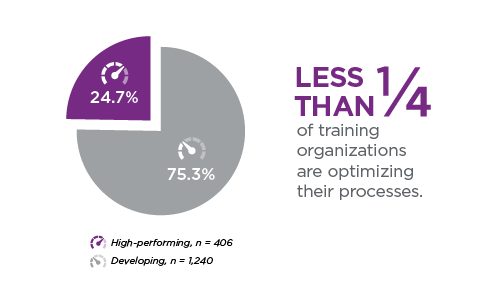 The highest-performing training organizations are process-oriented, focused on a holistic view of the training function and how its parts interact. They seek to deeply understand problems and have systems in place that allow them to investigate and identify solutions that work in combination to propel their businesses forward. This process-oriented approach offers a critical competitive advantage to the business they support.